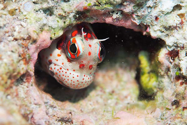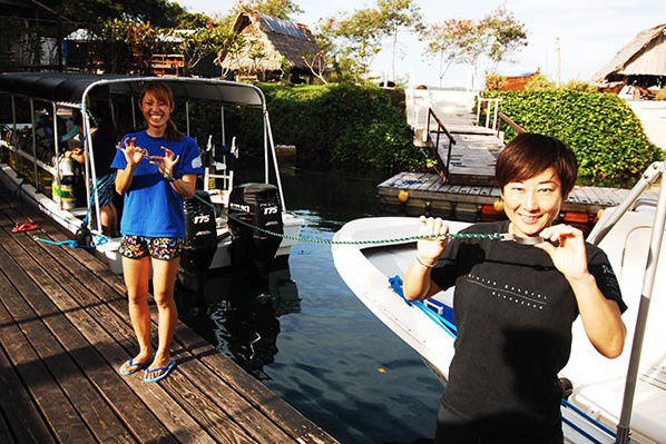 「出港前の桟橋前マクロダイブ 0th(ゼロス)」はボート出港前に1ビーチダイブ。エキジット後に外洋3ボートダイブ可能です。おススメは元オイランハゼの示威行動。巣穴から飛び上がります。毎日開催(繁忙期を除く)65ドルです。